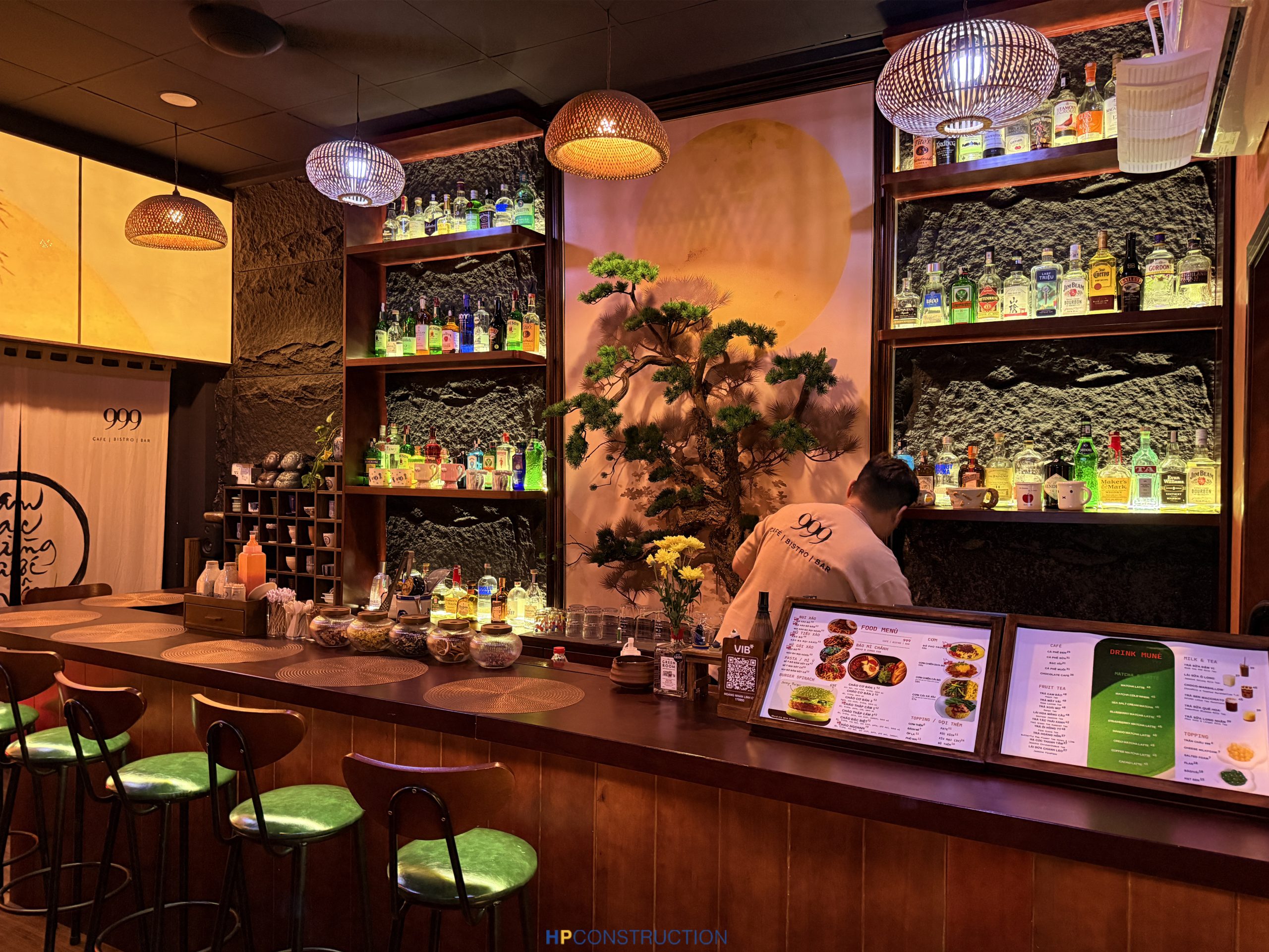 HP Construction đã đồng hành cùng 999 – Café Bistro Bar từ những ngày đầu với tinh thần tận tâm và sự chỉn chu trong từng chi tiết. Chúng tôi không chỉ hoàn thiện phần thô mà còn chăm chút từng mảng tường, ánh sáng, hệ thống quầy bar và khu vực tiếp đón để tạo nên một tổng thể hài hòa, ấm cúng và đậm chất riêng. Mỗi đường nét từ gỗ, đá cho đến các chi tiết trang trí đều được thi công chính xác, tỉ mỉ, đảm bảo đúng tinh thần thiết kế ban đầu. Sự phối hợp chặt chẽ giữa kỹ thuật và thẩm mỹ đã biến không gian thành nơi khách hàng có thể cảm nhận được sự thư giãn và tinh tế. Với chúng tôi, mỗi công trình không chỉ là sản phẩm bàn giao, mà còn là niềm tự hào của một tập thể thi công luôn đặt chất lượng và giá trị trải nghiệm của khách hàng lên hàng đầu.