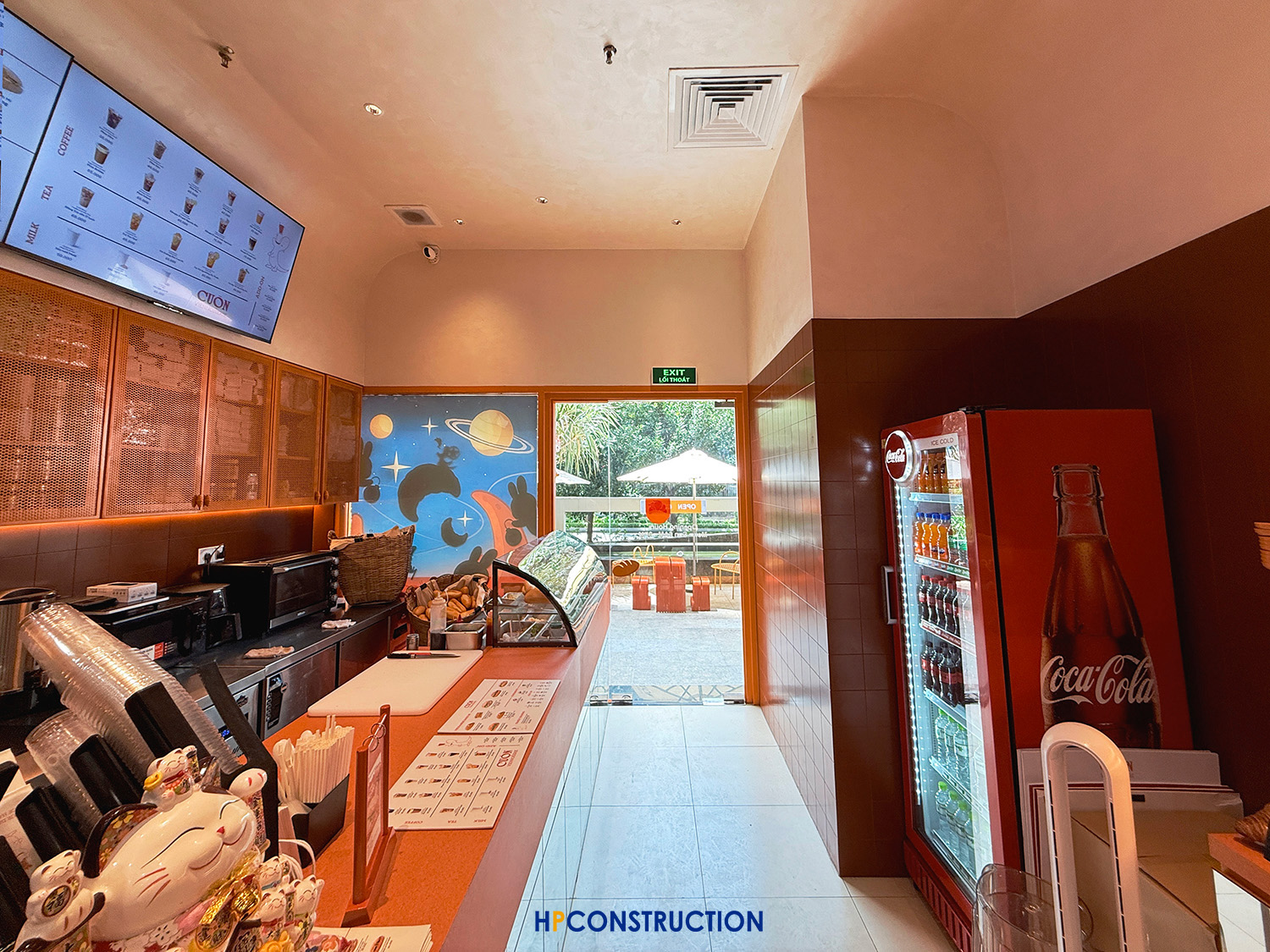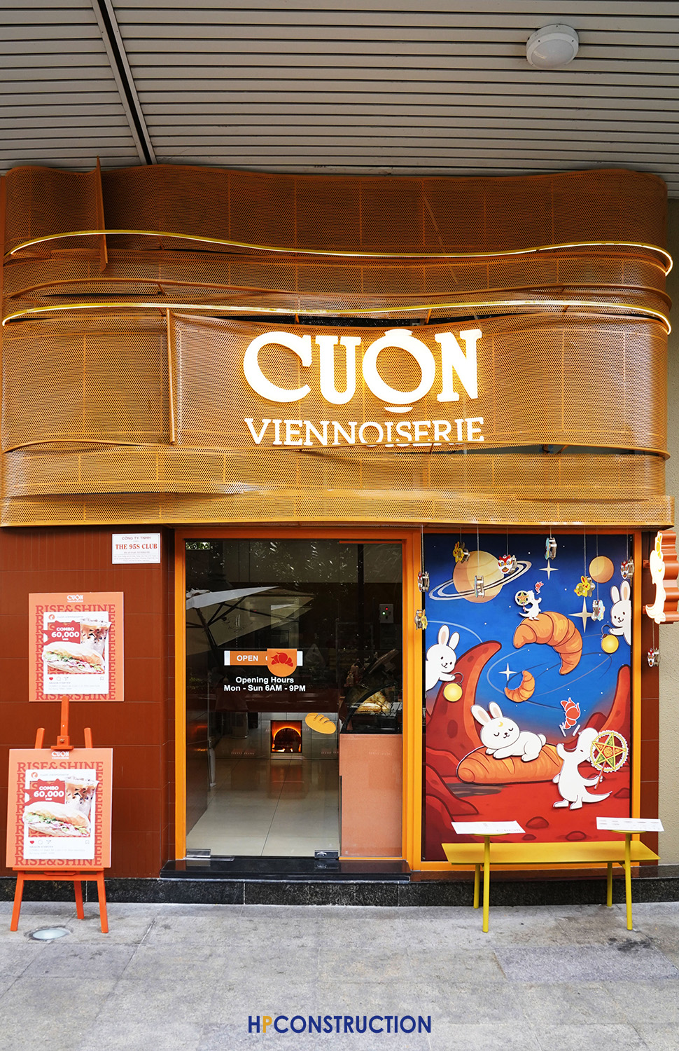 Tại Cuộn Viennoiserie – Sai Gon Pearl, HP Construction tập trung thi công đúng tinh thần thương hiệu: tươi sáng, trẻ trung và thật chỉn chu trong từng chi tiết thi công. Mặt tiền được xử lý bằng hệ tấm kim loại đục lỗ uốn cong kết hợp dải đèn line mềm mại, tạo hiệu ứng nhận diện nổi bật cho cả khu phố. Bên trong, quầy bar và hệ tủ trưng bày được thi công chuẩn kích thước vận hành, tối ưu luồng phục vụ nhưng vẫn giữ cảm giác gọn gàng, sạch sẽ. Toàn bộ ánh sáng được cân chỉnh để bánh lên màu đẹp và không gian luôn ấm áp. Một dự án nhỏ về diện tích, nhưng “lớn” ở sự tỉ mỉ và đồng bộ.